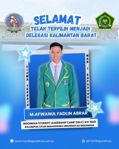 JurnalisMAN1KH- Kegiatan Indonesia Student Leadership Camp ( ISLC) XIV 2025, Yang di Laksanakan oleh Kelompok Studi Mahasiswa Universitas Indonesia, dan Telah melalui tahapan Seleksi seluruh Ketua Osis di Indonesia. Nama M. Afwanul Fadlin Abrar Ketua OSIM MAN 1 Kapuas Hulu Berhasil menjadi Delegasi Kalimantan Barat didalam Kegiatan Tersebut. Kegiatan Tersebut akan dilaksanakan pada 25-29 Oktober 2025. di Universitas Indonesia, Bersama dengan 100 Ketua OSIS Dari Berbagai daerah di indonesia.